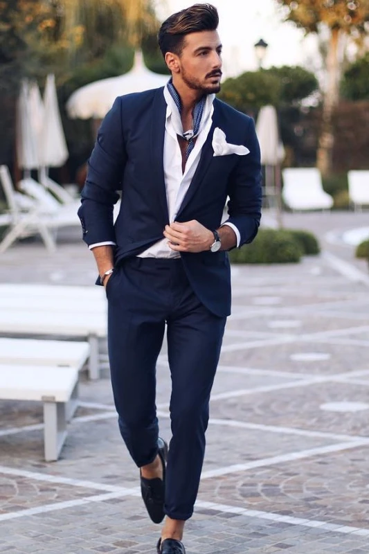 Grayson Dark Navy Shawl Lapel Prom Men Suits