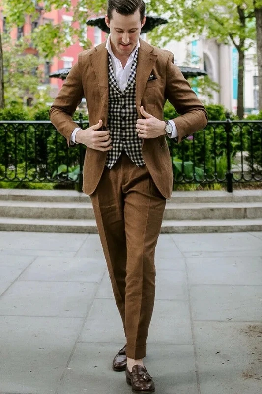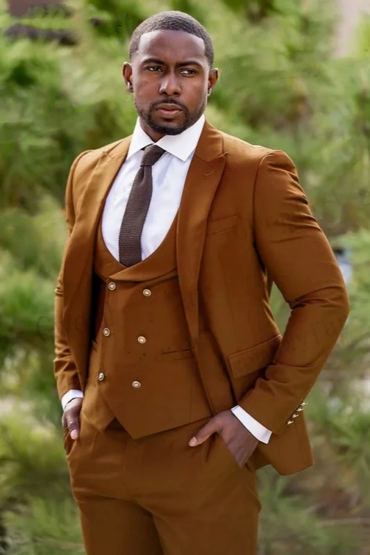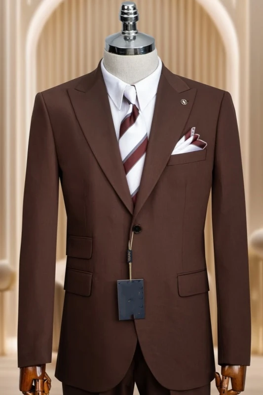 Secondly, dark brown suits can also showcase gentlemanly demeanor in social settings. Whether it's a formal social event, a wedding, or other solemn occasions, dark brown suits can make you stand out among the crowd. Compared to traditional black or dark blue, dark brown is more unique and leaves a deep impression.