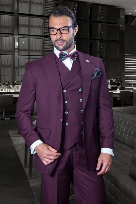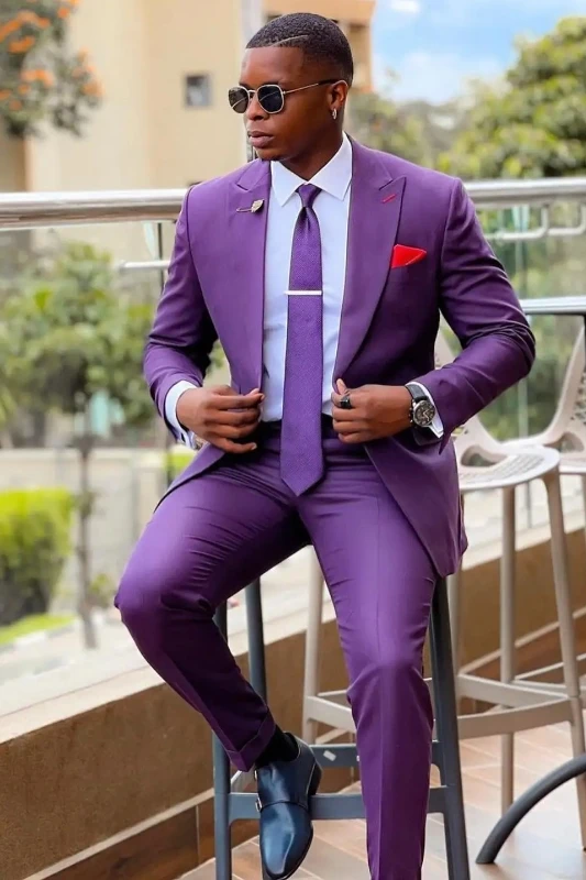 A dark purple men's suit can display professionalism and unique style in formal occasions,being an ideal choice to break the monotony of traditional black suits.