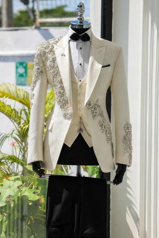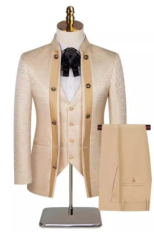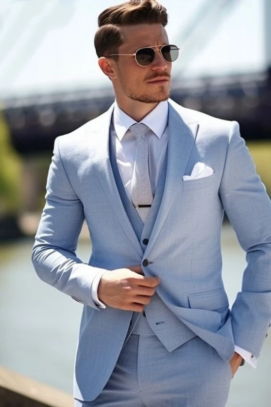 First of all, the three-piece outfit is the best choice for the groom at the wedding. In such a solemn and formal occasion, the three-piece outfit can perfectly demonstrate your attention to the wedding and your respect for the bride and all the guests.