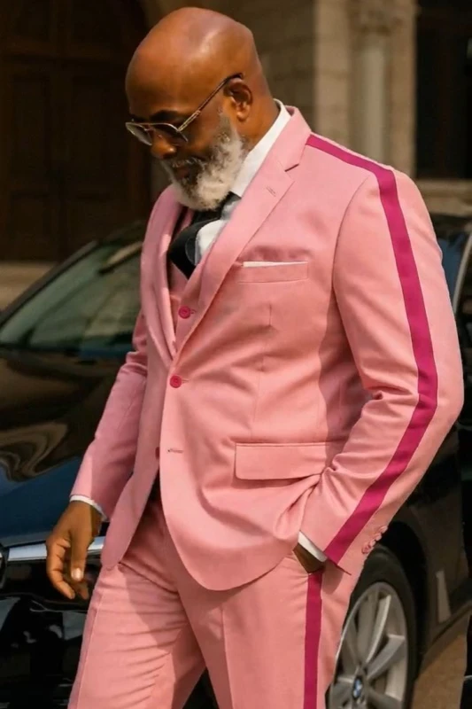 A three-piece suit refers to a set of clothing consisting of a suit jacket, a waistcoat, and trousers.
