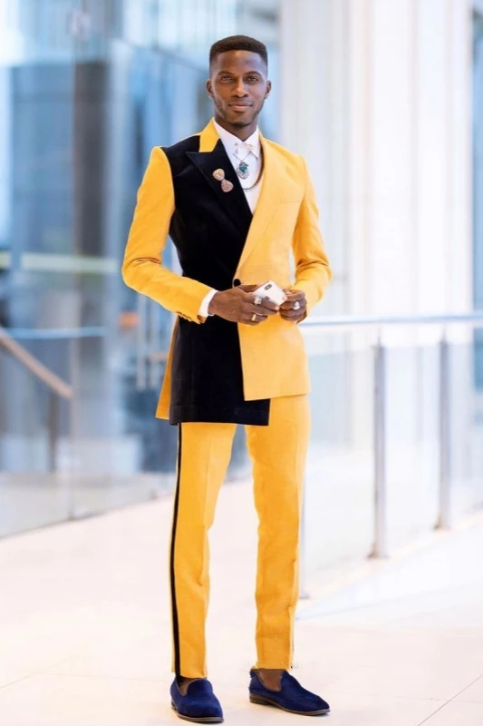 Due to its eye-catching and energetic yet challenging nature, a men's yellow suit requires careful consideration of the occasion. Here are some outfit suggestions based on different scenarios: