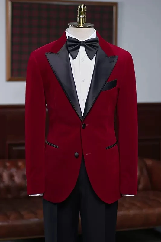 For example, a wine-red velvet suit paired with a dress shirt is suitable for formal events in the autumn and winter seasons.