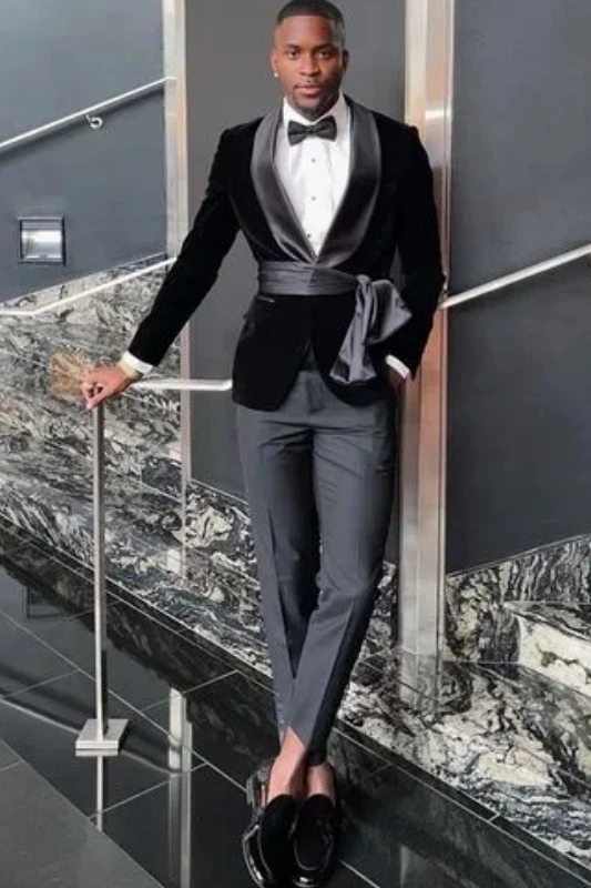 For example, a black velvet suit with a white shirt can showcase a stable yet stylish professional demeanor.