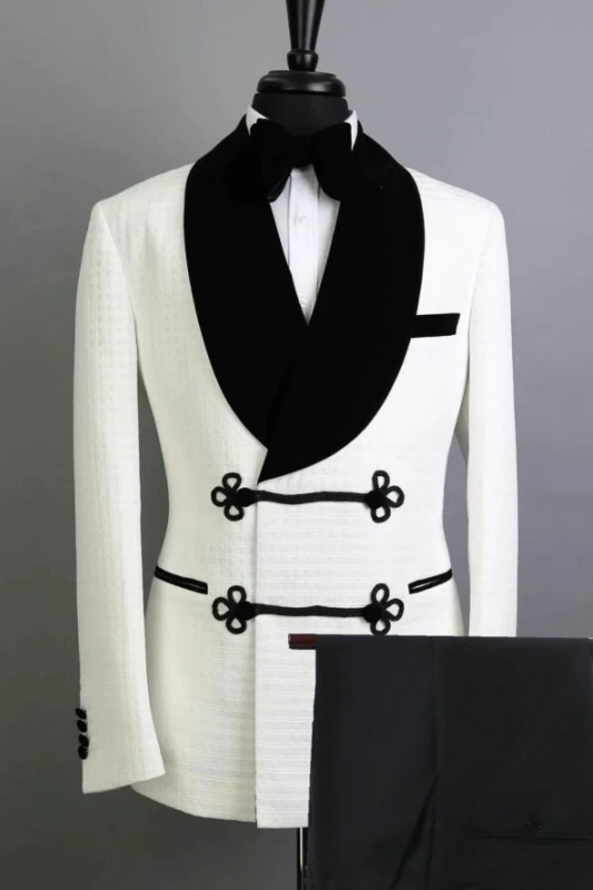 Abdul White Shawl Lapel Two Pieces Close Fitting Jacquard Wedding Suits
