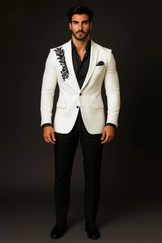 Abel Chic White Peaked Lapel Appliques Prom Men Suits