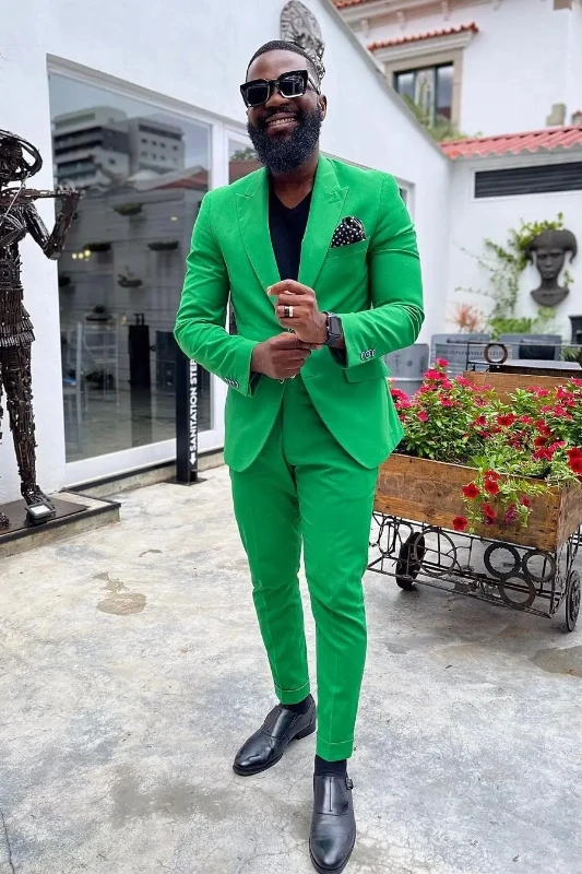 Abraham Chic New Arrival Green peaked lapel Prom Suits For Men