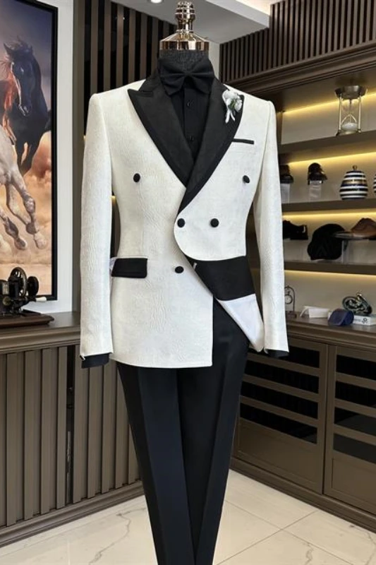 Abraham Modern White Peaked Lapel Double Breasted Jacquard Wedding Suits