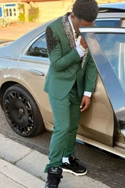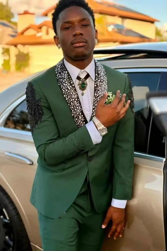 Adam Smart Dark Green Appliques Men Suits With Beadings Shawl Lapel