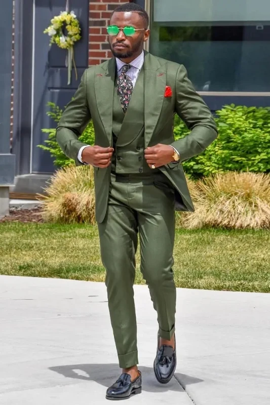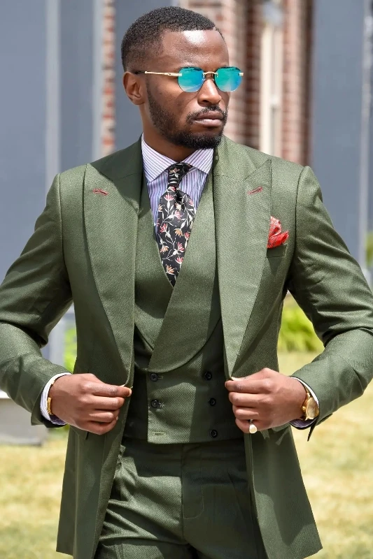 Adolph Dark Green Fashion Close Fitting Three Pieces Men Suits