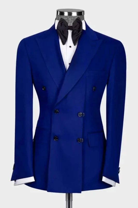 Adrian Dark Blue Peaked Lapel Double Breasted Slim Fit Prom Suits