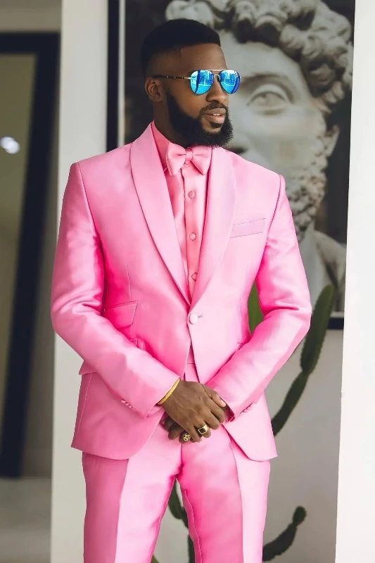 Adrian Newest Candy Pink Shawl Lapel Men Suits For Prom