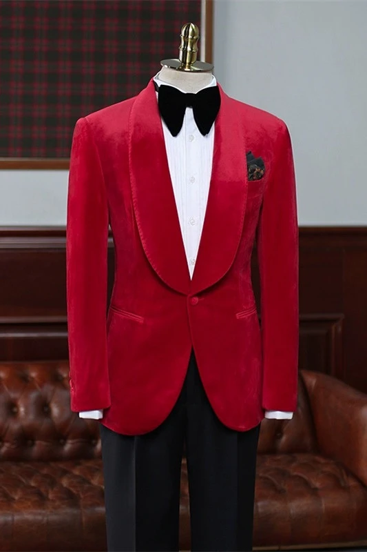 Ahern Fashion Red Shawl Lapel Velvet Wedding Suits For Men
