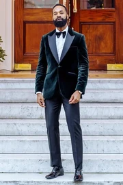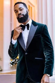 Aidan Black Velvet Peaked Lapel Best Fitted Wedding Men Suits