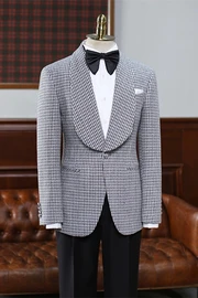 Aidan Fancy Gray Plaid Shawl Lapel Wedding Suits For Men