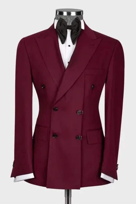 Aiden Chic Burgundy Peaked Lapel Double Breasted Prom Suits