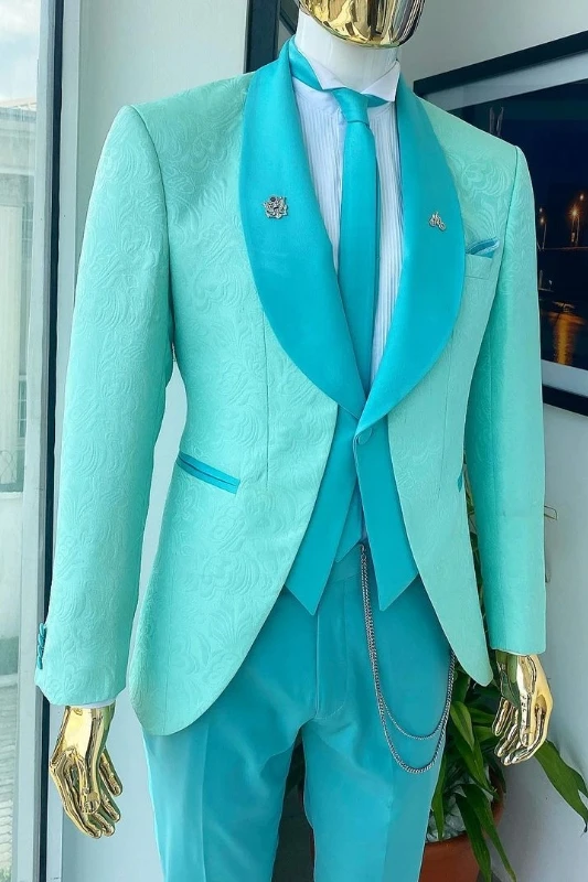 Aiden Newest Sky Blue Shawl Lapel Jacquard Wedding Suits For Men