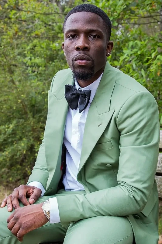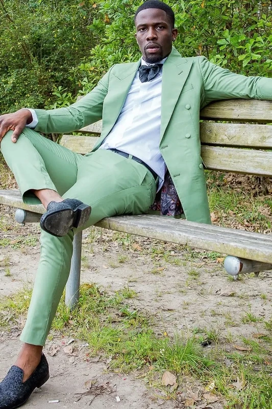 Alan Light Green Peaked Lapel Men Suits For Prom