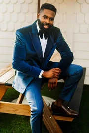 Aldrich Dark Blue Velvet Peaked Lapel Men Suits For Prom