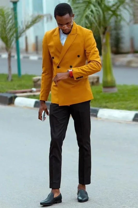Alexander Gold Fashion Peaked Lapel Double Breasted Men Suits