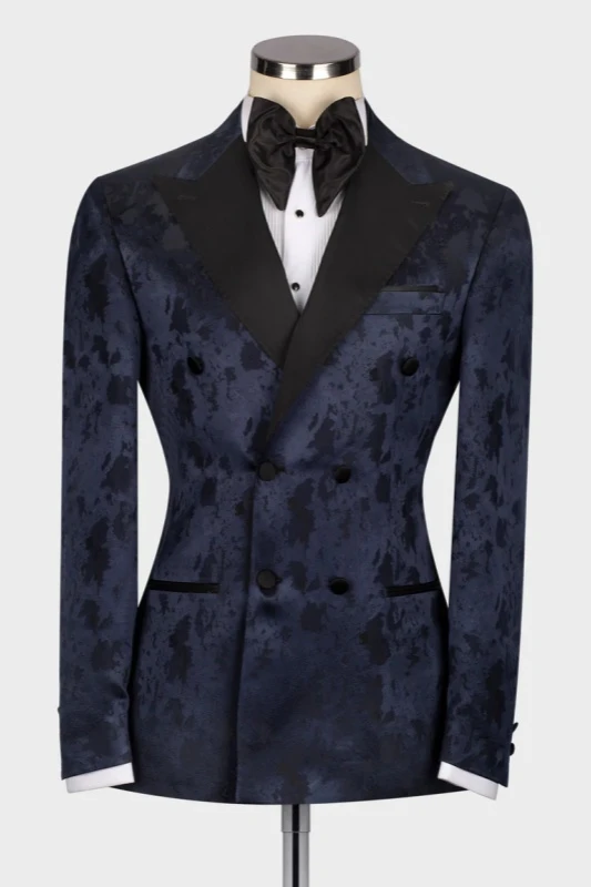 Alfred Dark Navy Jacquard Peaked Lapel Double Breasted Wedding Men Suits