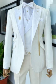 Alfred Simple White Jacquard Peaked Lapel Three Pieces Prom Suits