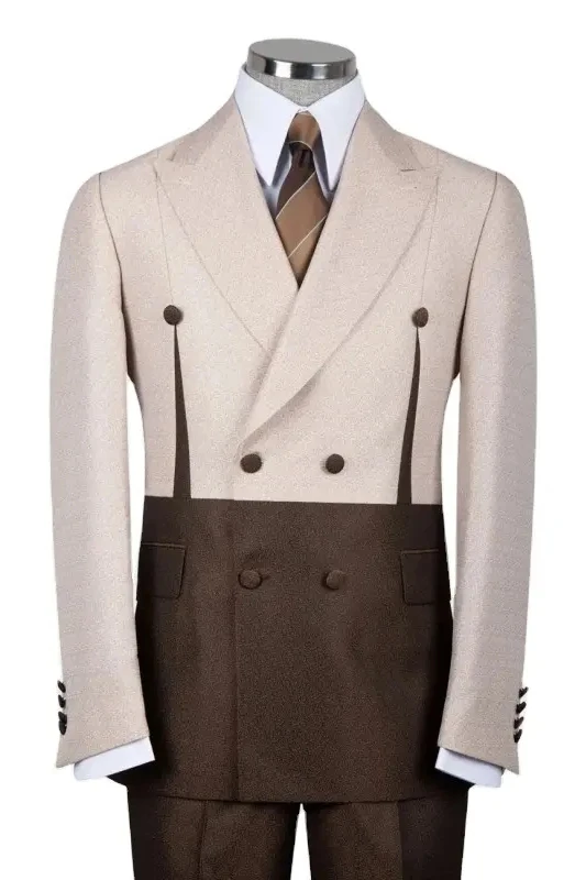 Algernon Coffee Peaked Lapel Double Breasted Glamorous Prom Suits