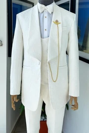 Algernon Fancy White Jacquard Shawl Lapel Three Pieces Wedding Suits