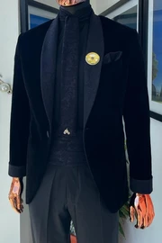 Allen Chic Black Shawl Lapel Two Pieces Velvet Men Suits For Wedding