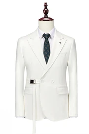 Allen Fashion White Double Breasted Peaked Lapel Prom Suits