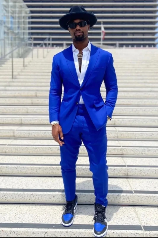 Alvin Dark Blue Peaked Lapel Slim Fit Formal Men Suits