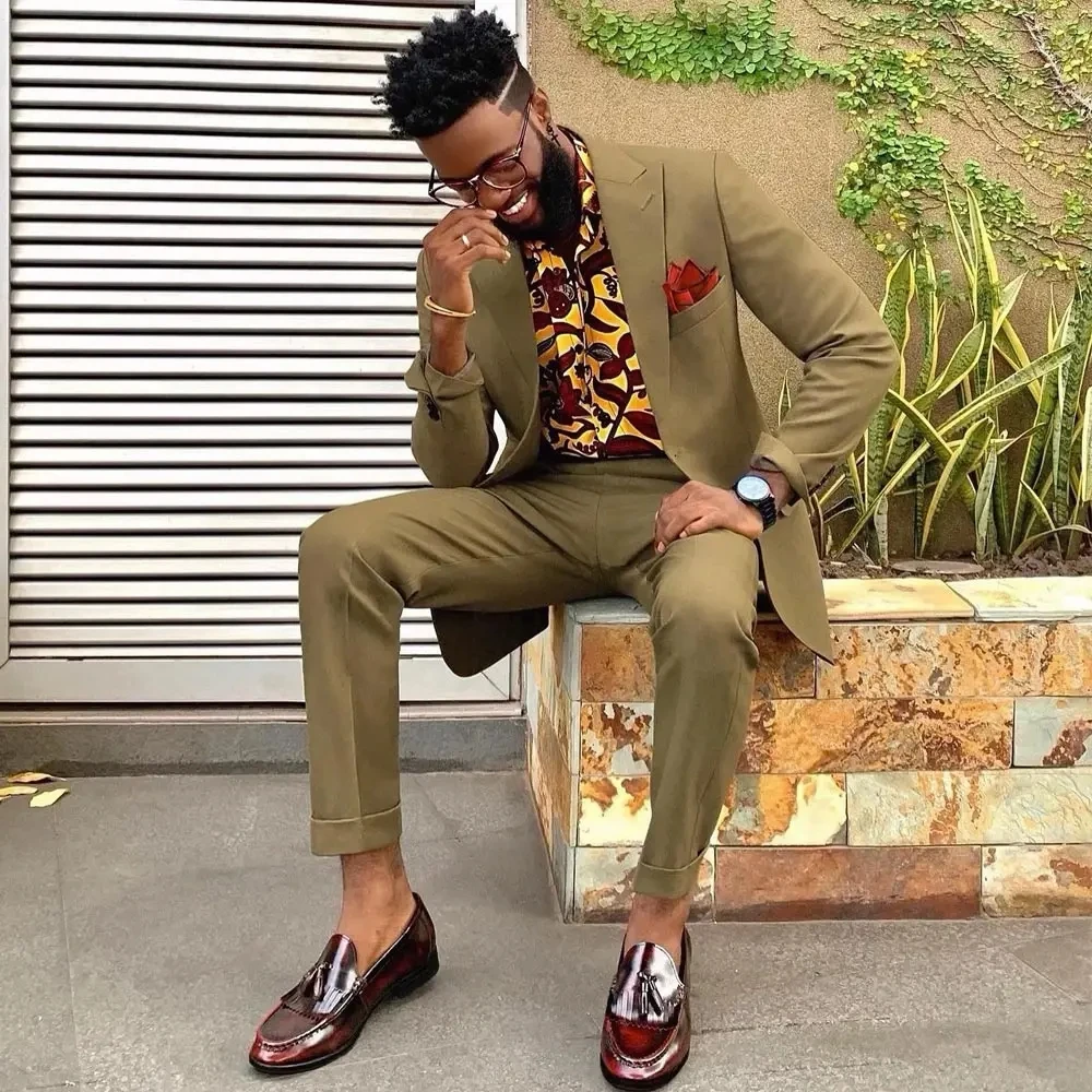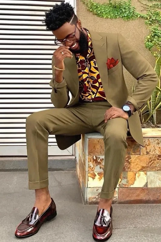 Alvis Chic Tan Peaked Lapel Men Suits For Prom