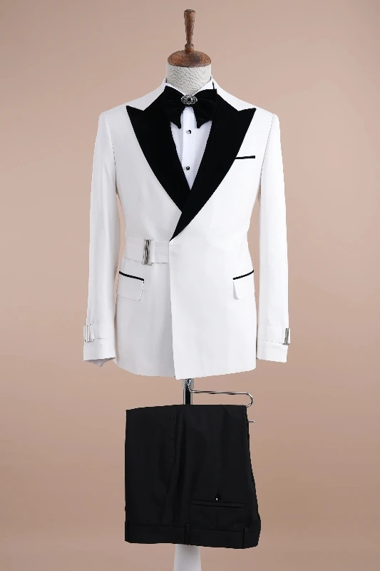 Amber Chic White Peaked Lapel Slim Fit Two Pieces Prom Suits