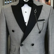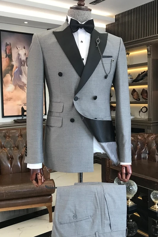 Americo Formal Gray Peaked Lapel Double Breasted Business Men Suits
