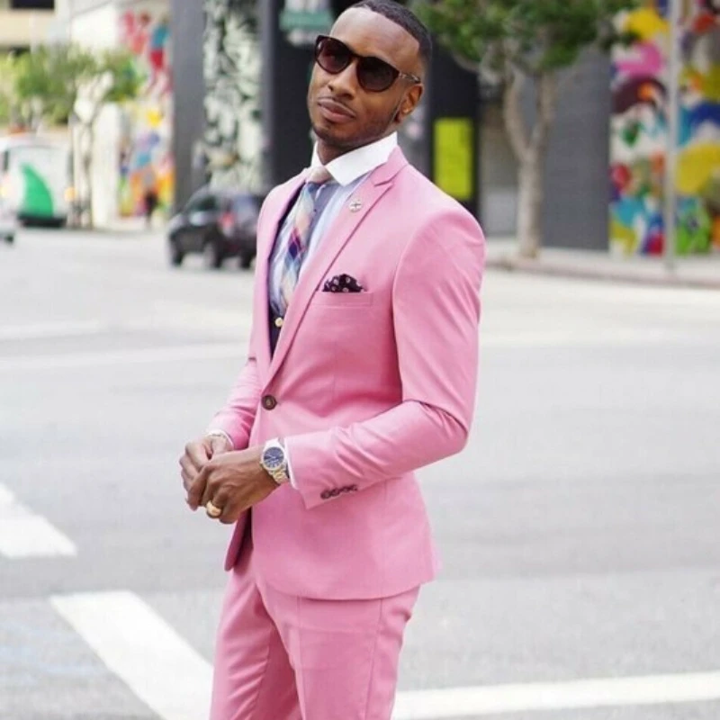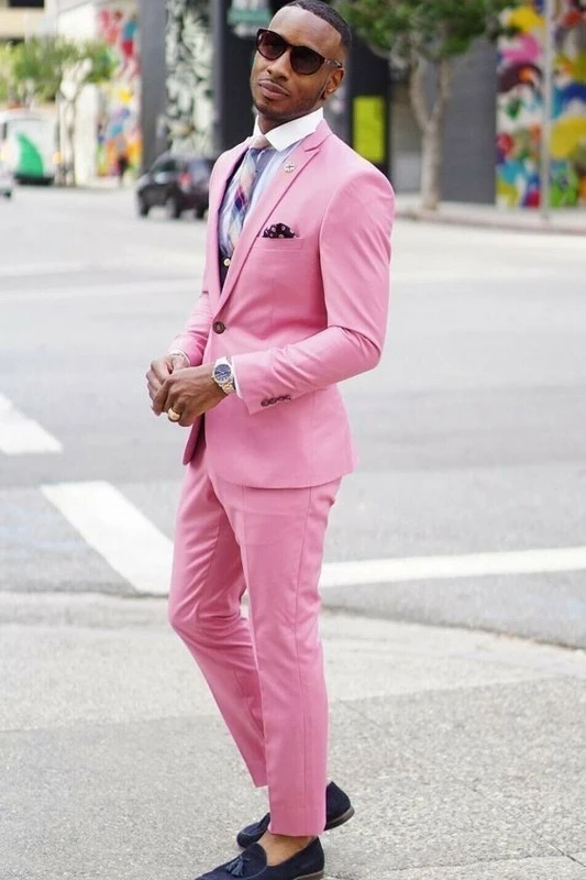 Amos Chic Pink Slim Fit Peaked Lapel Bespoke Men Suits