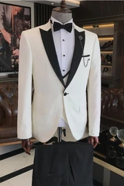 Andre Simple White Peaked Lapel Three Pieces Prom Suits For Men