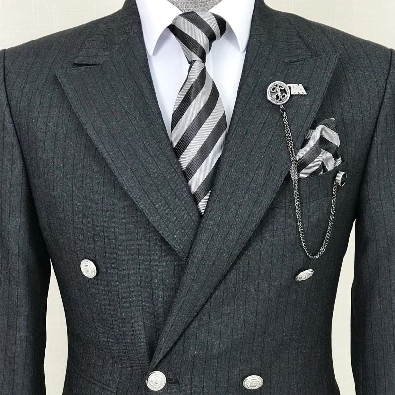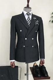 Ansel Formal Black Striped Peaked Lapel Double Breasted Business Suits