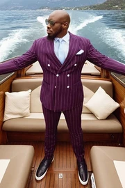 Anson Chic Grape Striped Peaked Lapel Double Breasted Men Suits