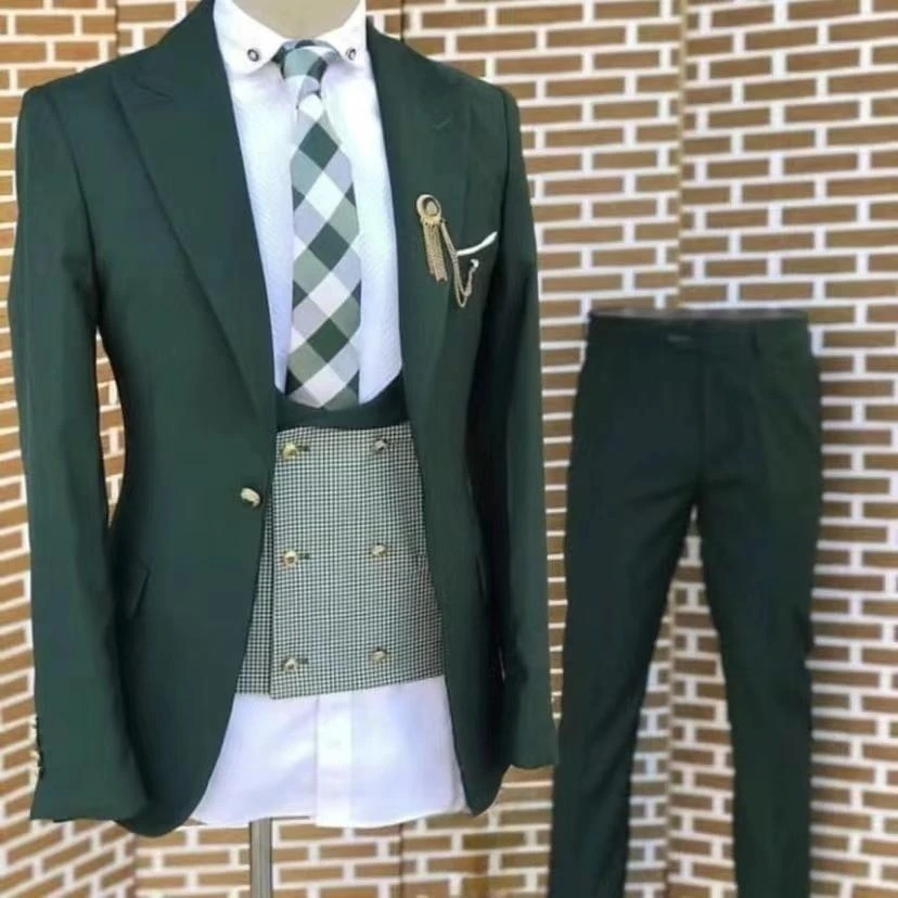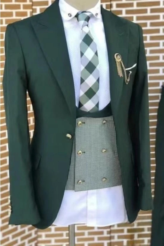 Antoine Fancy Dark Green Peaked Lapel Three Pieces Prom Suits