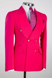 Antoine Fashion Rose Red Shawl Lapel Double Breasted Wedding Suits