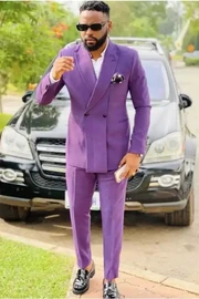 Antony Purple Double Breasted Peaked Lapel Slim Fit Men Suits