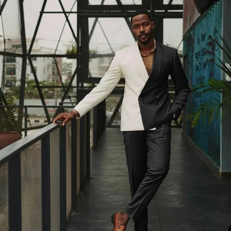 Archibald Black And White Double Breasted Slim Men Suits For Prom