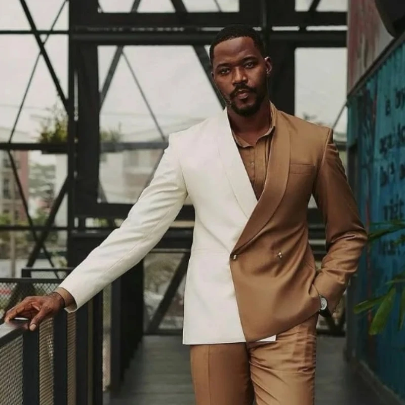 Aries Gold And White Double Breasted Slim Men Suits For Prom