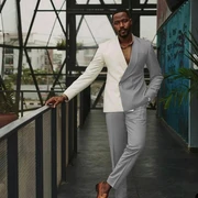 Armstrong Gray And White Double Breasted Slim Men Suits For Prom