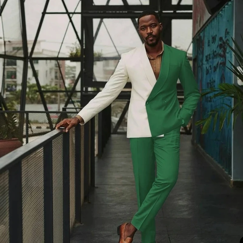 Arno Dark Green And White Double Breasted Slim Men Suits For Prom