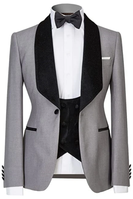 Arnold Bespoke Gray Shawl Lapel Three Pieces Men Suits For Wedding
