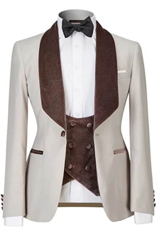 Arthur Chic Beige Shawl Lapel Three Pieces Men Suits For Wedding