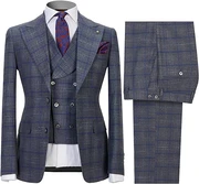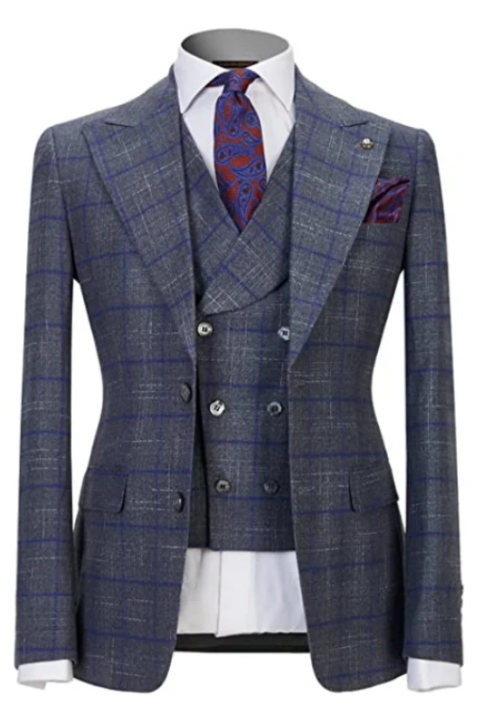 Arvin Gary Peaked Lapel Close Fitting Three Pieces Plaid Men Suits For Business
