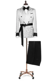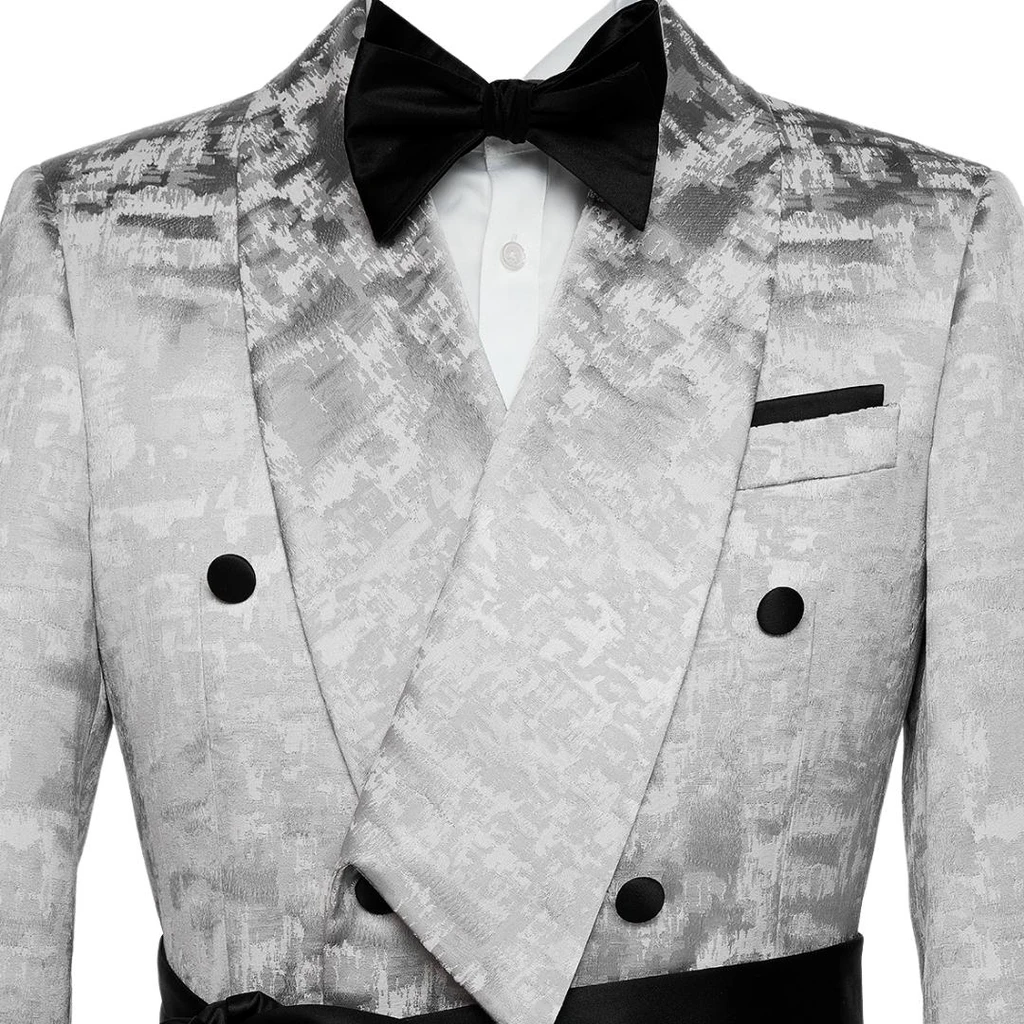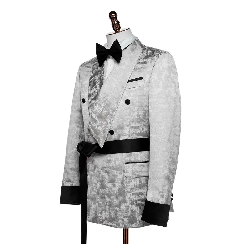 Asa Special Slivery Jacquard Shawl Lapel Double Breasted Wedding Suits