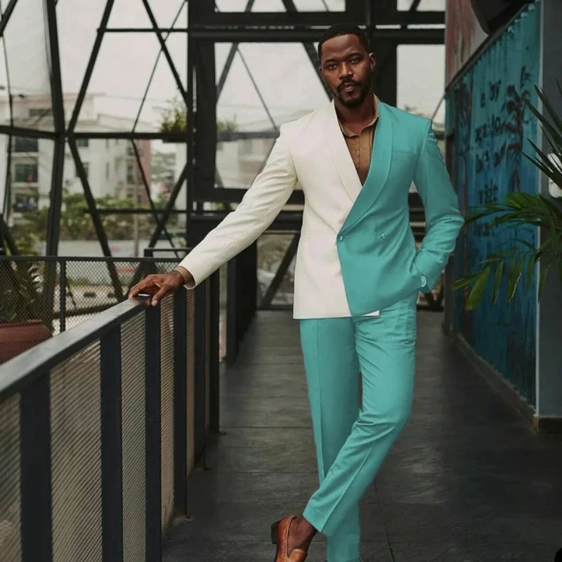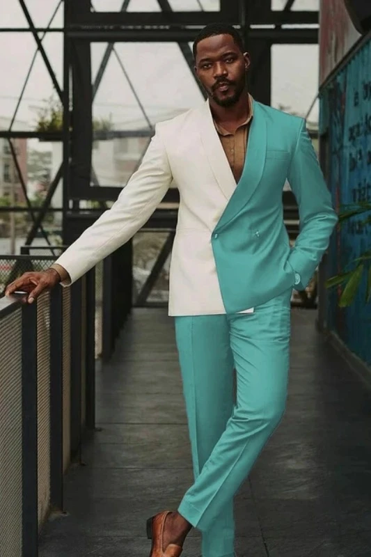 Aubrey Light Green And White Double Breasted Slim Men Suits For Prom
